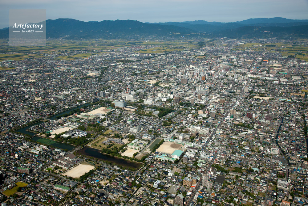 | 作品タイトル | 佐賀平野、佐賀城跡(日本百名城)より佐賀駅と佐賀市街地 | モデルリリース | なし | |