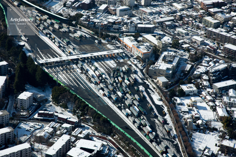 作品タイトル     雪の影響で大渋滞の東名高速道路(東名東京料金所)周辺 モデルリリース なし