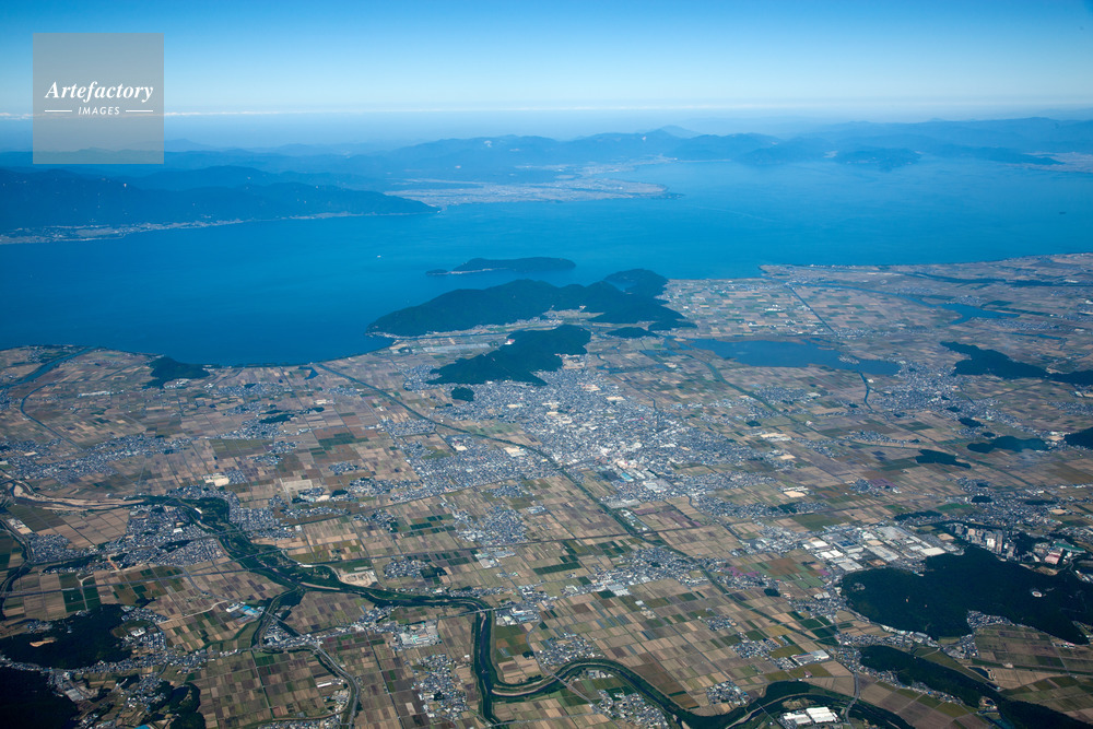 作品タイトル     近江八幡市街地、西の湖、大中の湖干拓地、八幡山と琵琶湖 モデルリリース なし
