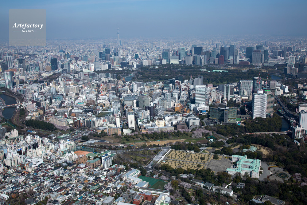 | 作品タイトル | 満開の桜の迎賓館,四ツ谷駅周辺より丸の内,大手町方面 | モデルリリース | なし | |