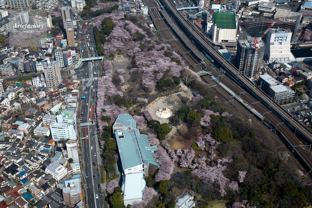 | 作品タイトル | 満開の桜の飛鳥山博物館と飛鳥山公園と王子駅 | モデルリリース | なし | |