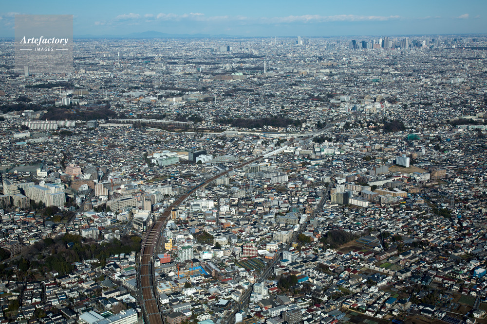 | 作品タイトル | 狛江駅,喜多見,成城学園駅(小田急線)周辺より都心方面 | モデルリリース | なし | |