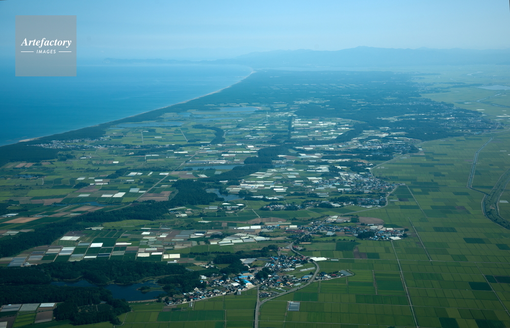 | 作品タイトル | 津軽平野、木造吹原の沼群と七里長浜の海岸線より十三湖方面 | モデルリリース | なし | |