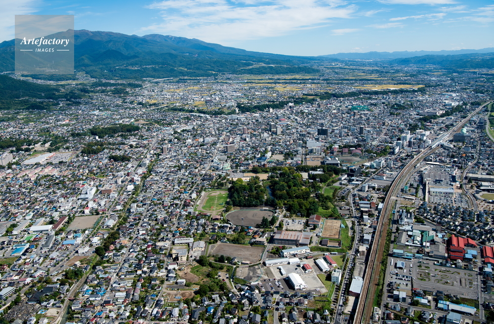 | 作品タイトル | 上田城跡,眞田神社(日本百名城)周辺より上田駅と上田市街地 | モデルリリース | なし | |