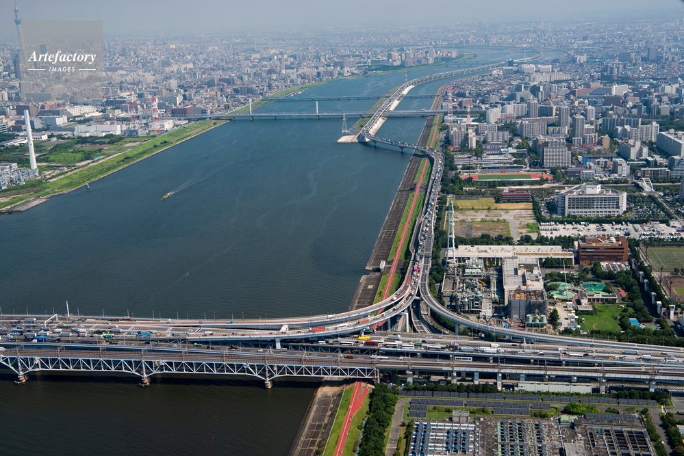 | 作品タイトル | 葛西JCT(首都高速湾岸線,首都高速中央環状線)周辺より荒川上流方面 | モデルリリース | なし | |