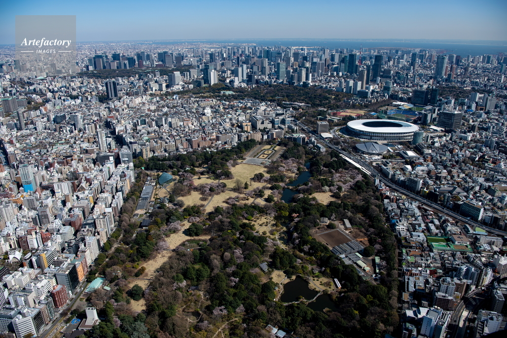 | 作品タイトル | 新宿御苑の桜と国立競技場と都心 | モデルリリース | なし | |