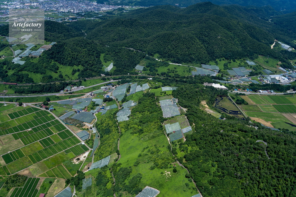 | 作品タイトル | 南陽市のビニールハウス群と水田と果樹園 | モデルリリース | なし | |