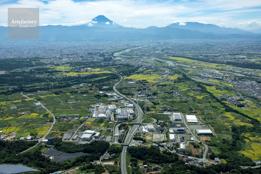 | 作品タイトル | 韮崎IC(中央自動車道)と工場群地区より甲府盆地,富士山方面 | モデルリリース | なし | |