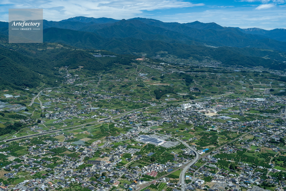 | 作品タイトル | 山梨市落合付近より山梨県笛吹川フルーツ公園方面の果樹園 | モデルリリース | なし | |