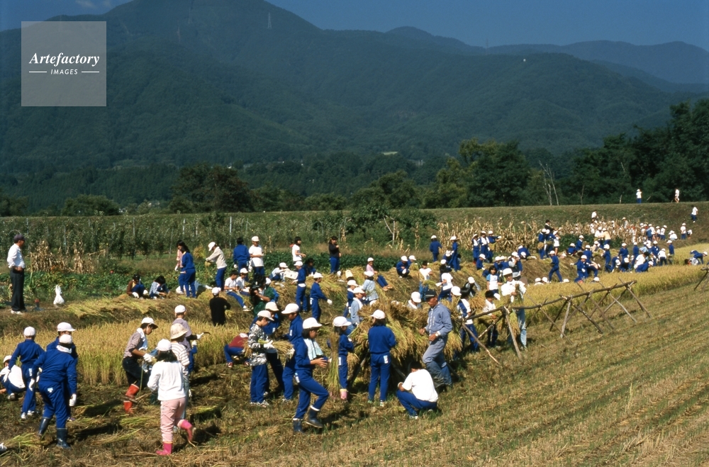 | 作品タイトル | 農作業の稲刈り体験する中学生 | モデルリリース | なし | |