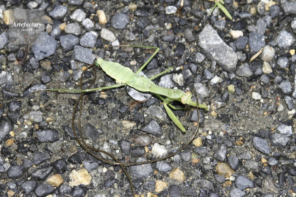 | 作品タイトル | ハラビロカマキリから出たハリガネムシ | モデルリリース | なし | |