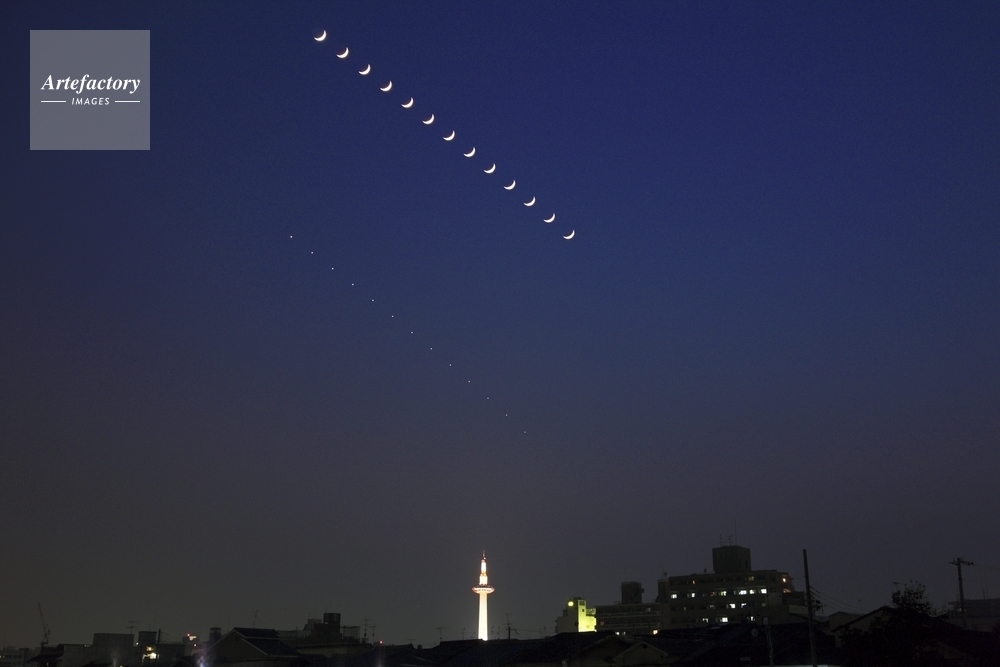 | キャプション | 17時22分から18時22分まで5分ごとに撮影の写真13枚を合成,京都市東山区五条大橋南東詰より南西方向を撮影 | 制限事項 | ||