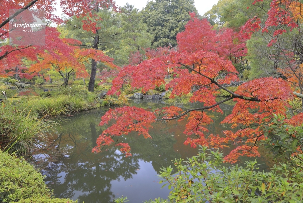 | キャプション | 秋 紅葉 モミジ 等持院 庭園 池泉回遊式庭園 足利家菩提寺 心字池 夢窓国師 寺 池 要掲載許可 | 制限事項 | ||