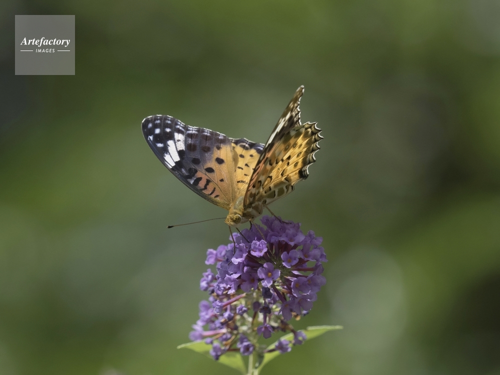 作品タイトル     ブッドレアで吸蜜するツマグロヒョウモン モデルリリース なし