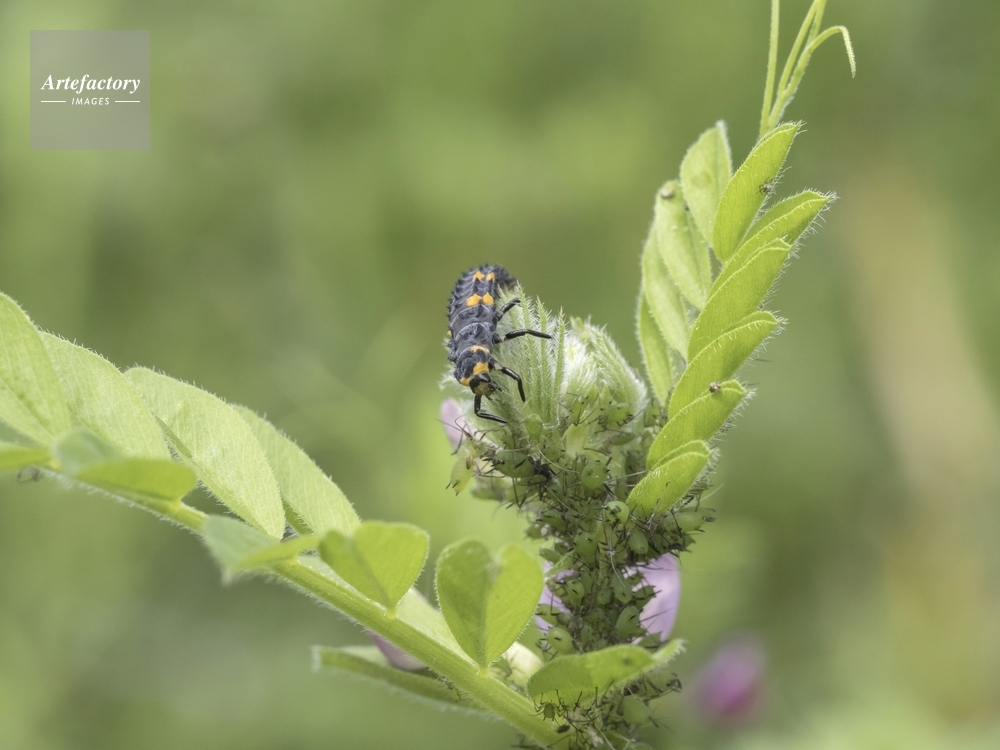 | 作品タイトル | アブラムシを補食するナナホシテントウの終齢幼虫 | モデルリリース | なし | |