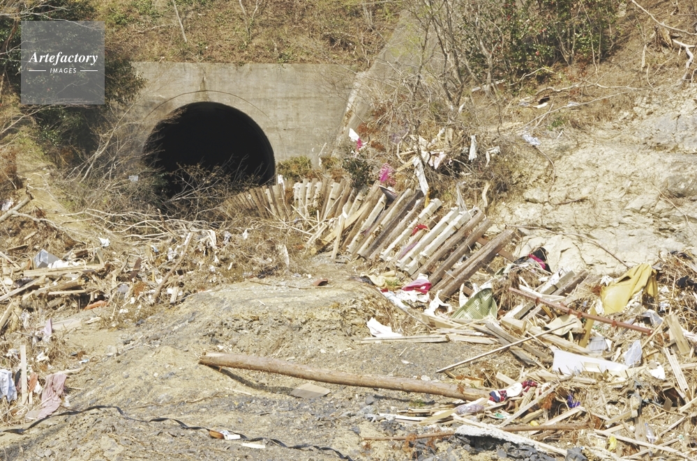 | 作品タイトル | 東日本大震災の津波で壊されたトンネルと線路 | モデルリリース | なし | |