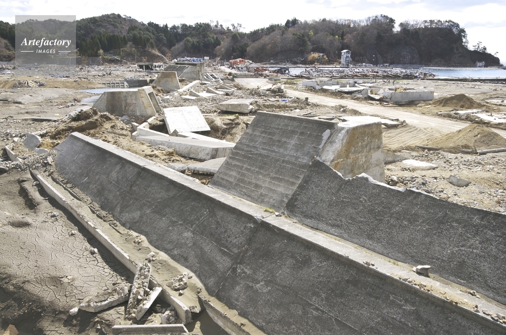 | 作品タイトル | 東日本大震災の津波で壊された街と防潮堤 | モデルリリース | なし | |