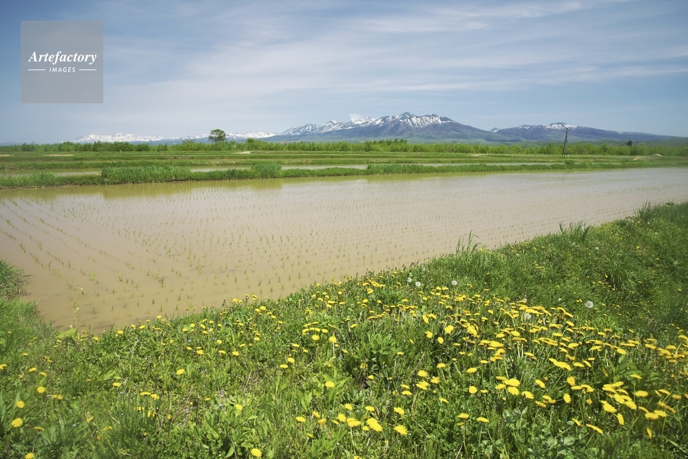 | 作品タイトル | 十勝岳連峰と水田とタンポポ | モデルリリース | なし | |