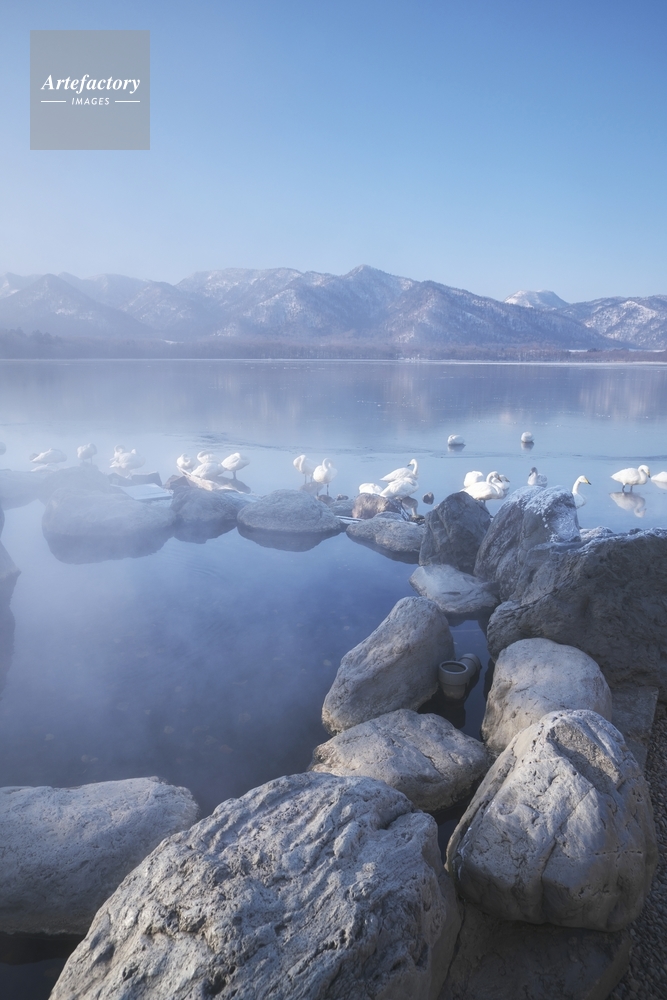 | 作品タイトル | 屈斜路湖のコタン温泉露天風呂とハクチョウ | モデルリリース | なし | |