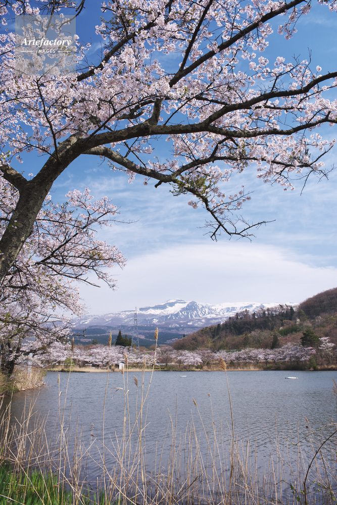 作品タイトル     栗山池公園の桜と鳥海山 モデルリリース なし