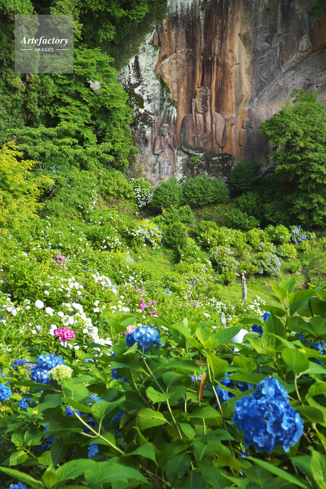 | 作品タイトル | 普光寺の磨崖仏とアジサイ | モデルリリース | なし | |