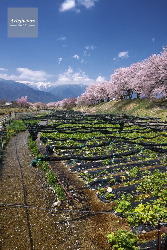| 作品タイトル | 早春賦の碑の桜とわさび田 | モデルリリース | なし | |