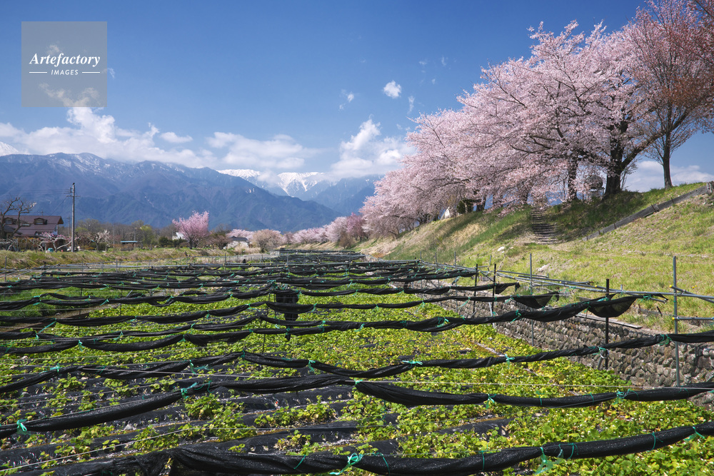 | 作品タイトル | 早春賦の碑の桜とわさび田 | モデルリリース | なし | |