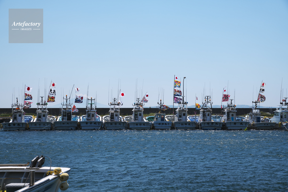 | 作品タイトル | 富磯漁港の大漁旗と漁船 | モデルリリース | なし | |