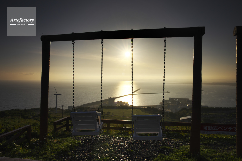 | 作品タイトル | 稚内市街地とブランコの日の出 | モデルリリース | なし | |