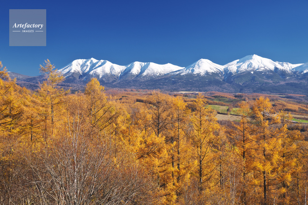 | 作品タイトル | 十勝岳連峰とカラマツ林の秋 | モデルリリース | なし | |