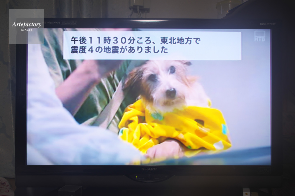 | 作品タイトル | 緊急地震速報の流れるテレビ画面 | モデルリリース | なし | |