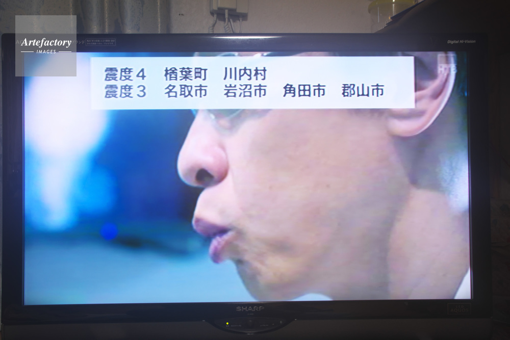 | 作品タイトル | 緊急地震速報の流れるテレビ画面 | モデルリリース | なし | |