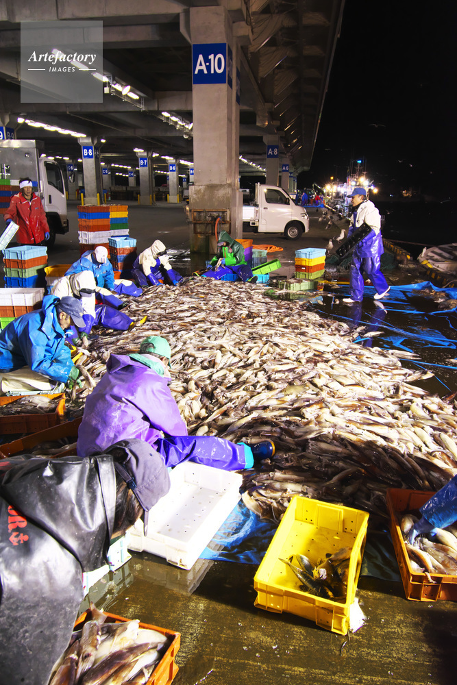 | 作品タイトル | 羅臼港のイカ荷揚げとイカ選別 | モデルリリース | なし | |