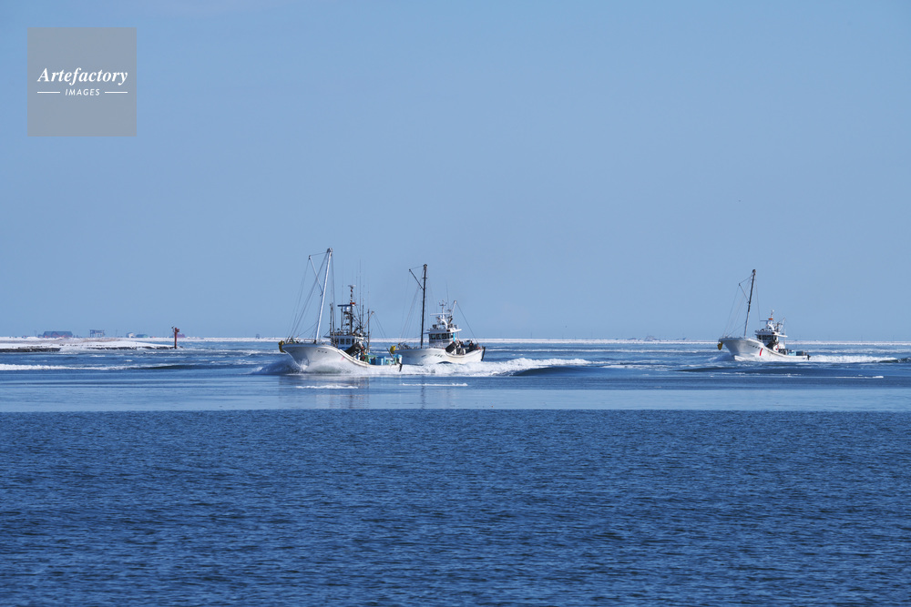 | 作品タイトル | 尾岱沼漁港に帰港するホタテ漁船 | モデルリリース | なし | |