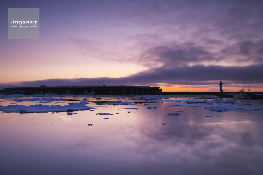 | 作品タイトル | 羅臼港の朝と流氷 | モデルリリース | なし | |