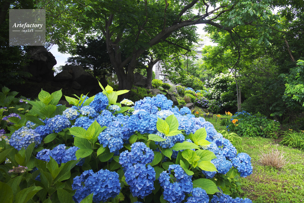 | 作品タイトル | バチラー夫妻記念堂とアジサイ | モデルリリース | なし | |