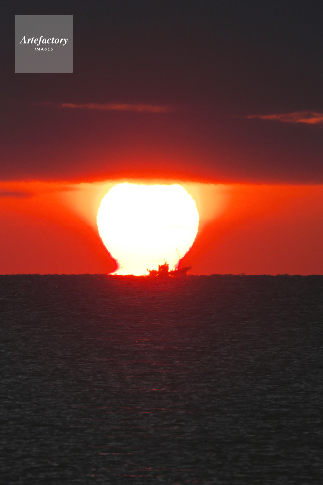| 作品タイトル | 根室海峡の日の出とホタテ漁船 | モデルリリース | なし | |