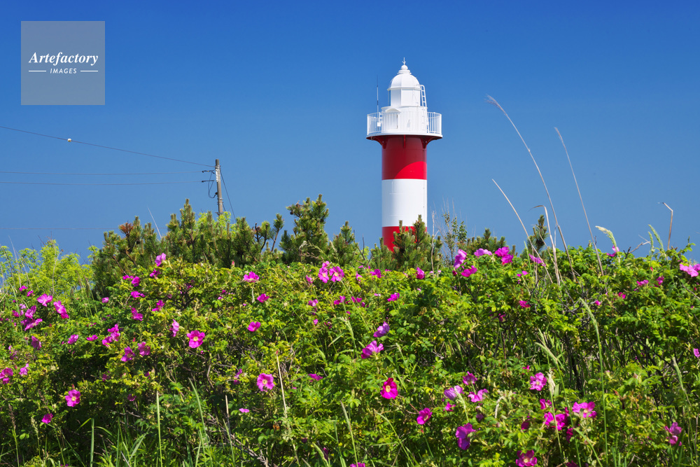 作品タイトル     石狩灯台とハマナス モデルリリース なし