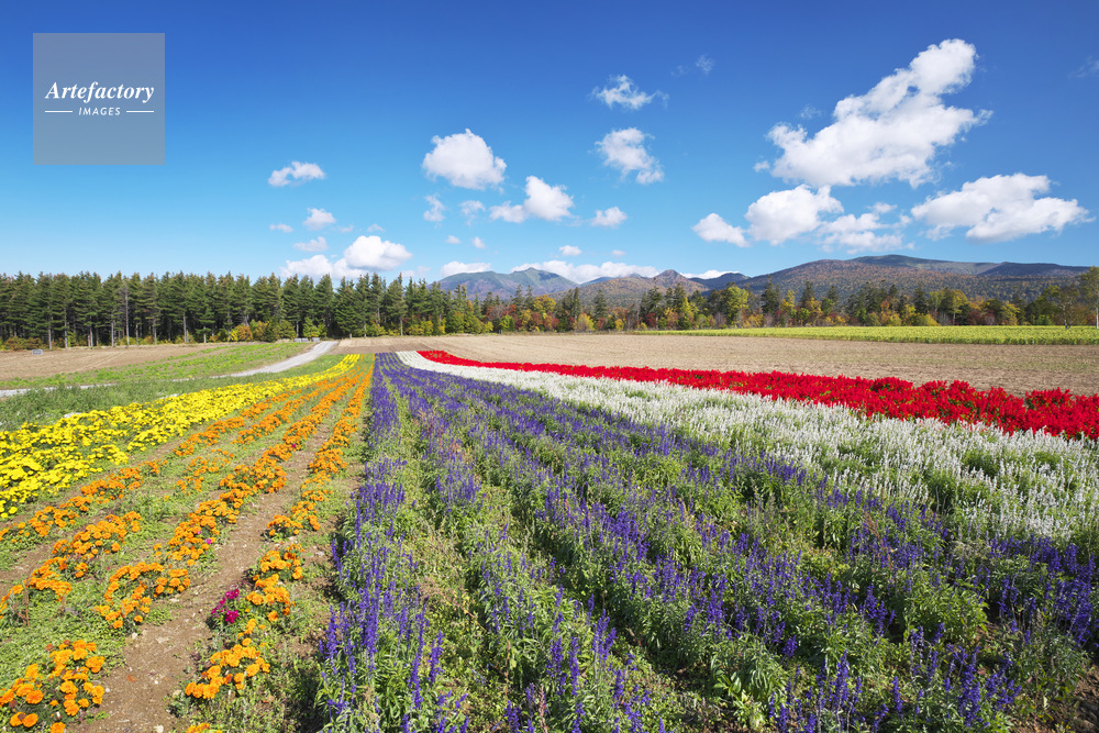 | 作品タイトル | 麓郷展望台の花畑と前富良野岳などの山々 | モデルリリース | なし | |
