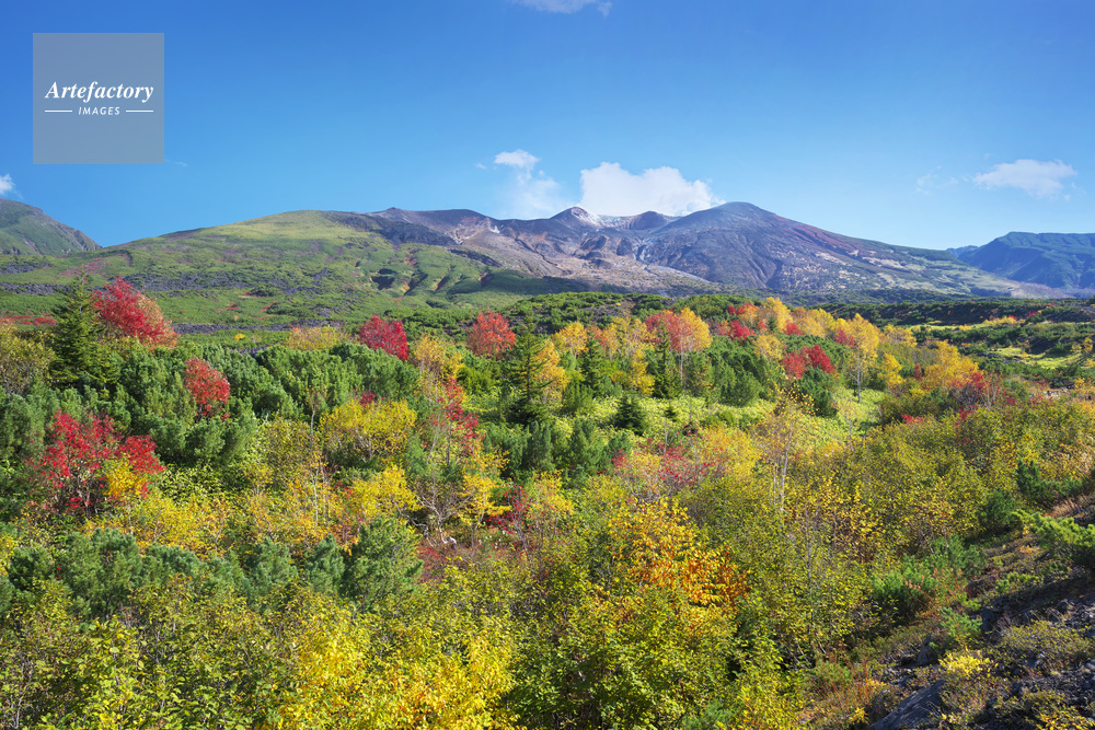 | 作品タイトル | 望岳台の紅葉と十勝岳連峰 | モデルリリース | なし | |