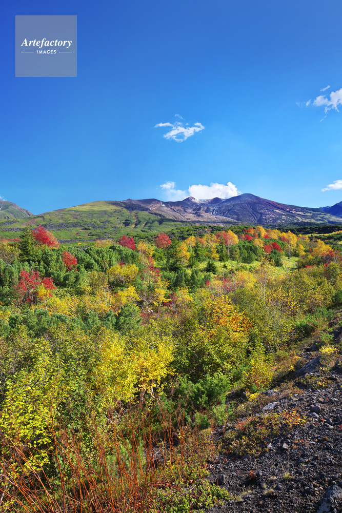 | 作品タイトル | 望岳台の紅葉と十勝岳連峰 | モデルリリース | なし | |