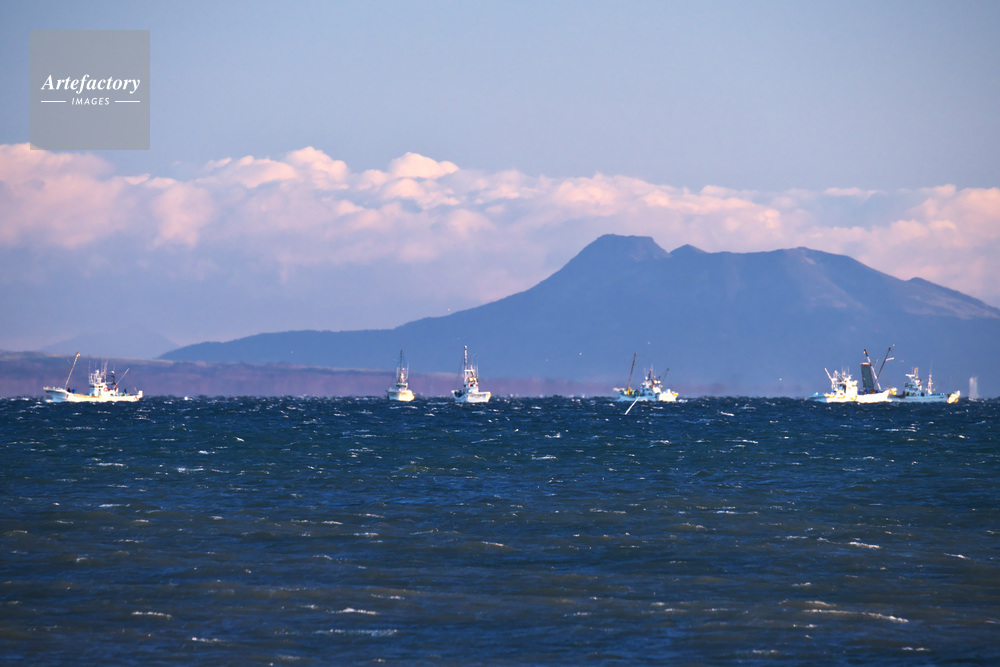 | 作品タイトル | 国後島とホタテ漁船 | モデルリリース | なし | |