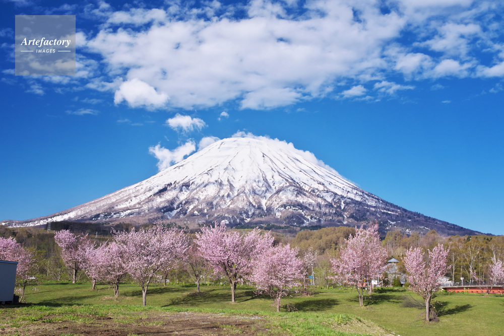 作品タイトル     羊蹄山と尻別川沿いの桜 モデルリリース なし