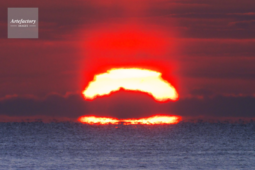 作品タイトル     日の出(サンピラー)と朝の海 モデルリリース なし