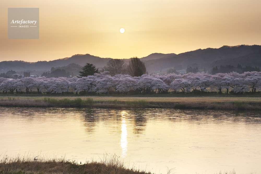 | 作品タイトル | 北上展勝地の桜と北上川の日の出 | モデルリリース | なし | |