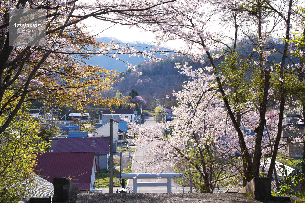 | 作品タイトル | 幾春別神社の桜と奔別町市街地 | モデルリリース | なし | |