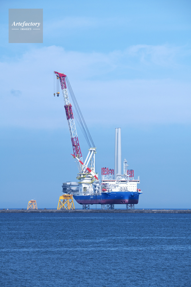 | 作品タイトル | 石狩湾新港沖の船体をジャッキアップした洋上風力発電の設置作業 | モデルリリース | なし | |