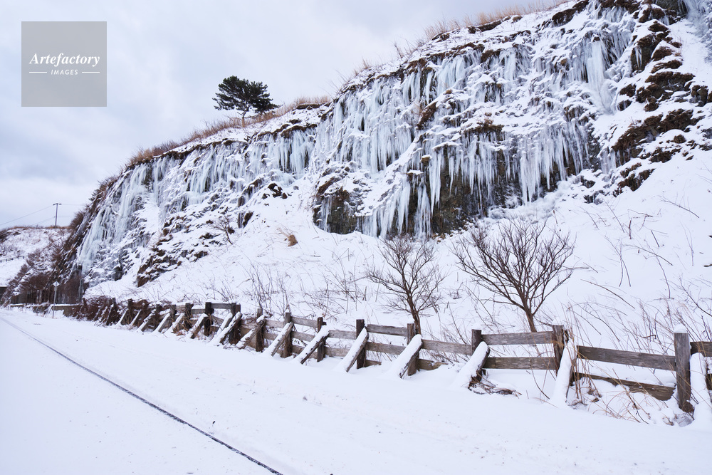 | 作品タイトル | 千畳敷駅の線路と氷瀑 | モデルリリース | なし | |