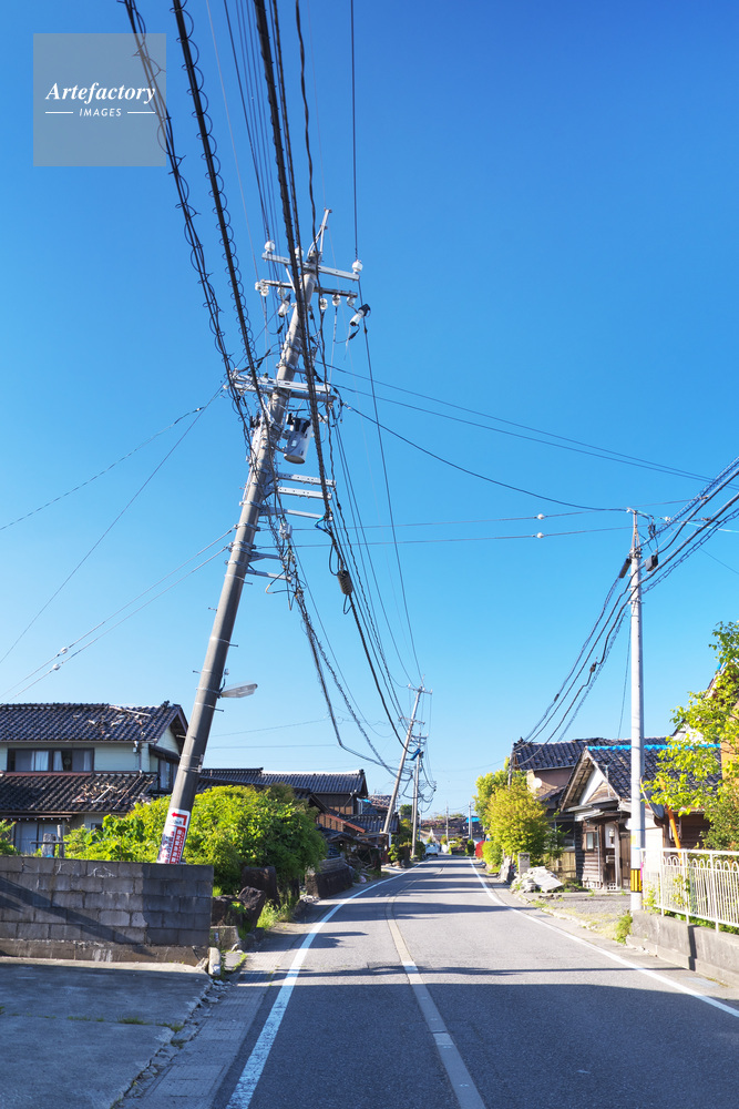 | 作品タイトル | 能登半島地震 傾いた電柱と市街地 | モデルリリース | なし | |