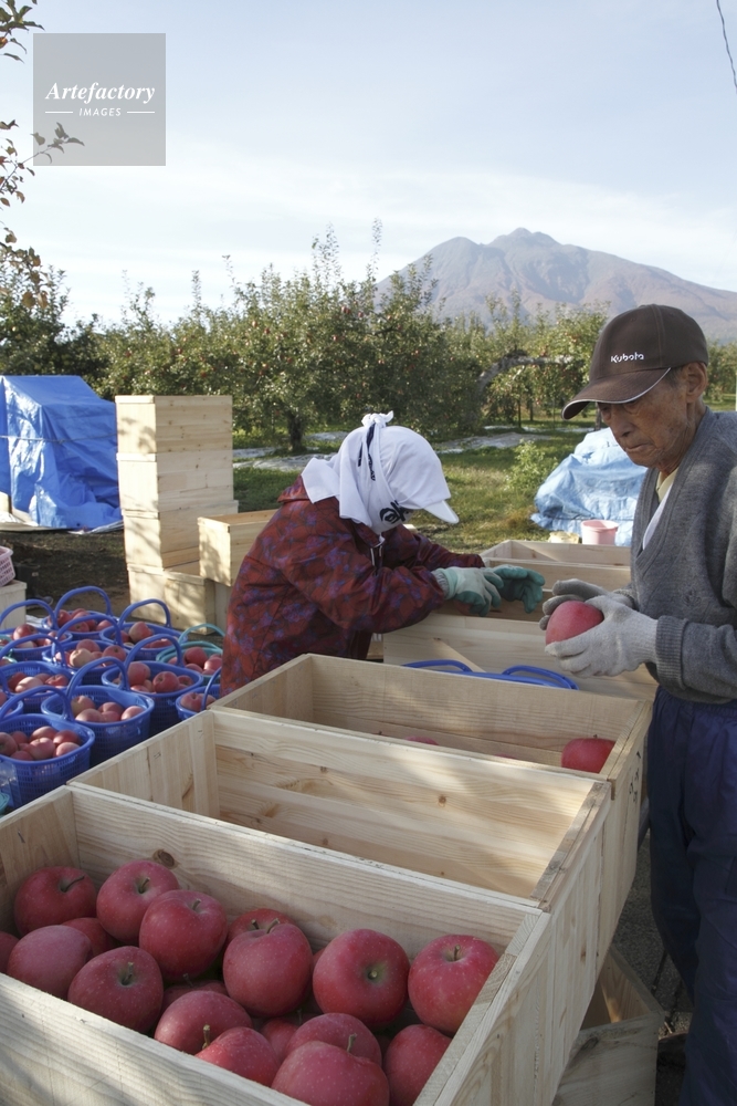 | 作品タイトル | リンゴの収穫と選別、岩木山 | モデルリリース | なし | |